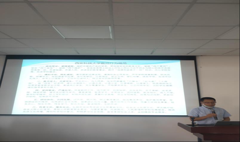 党委副书记陈伟伯领学习近平总书记在教育大会、清华大学考察时对加强教师队伍建设要求和对广大教师的希望;副经理于振华领学“XC体育教师行为规范”;副经理马天带领全体教师庄严宣誓。罗晓霞、张小艳、许晓阳、马天、邓凡、白生宝6名教师结合自身成长经历和教学、科研、管理服务经验谈认识体会。