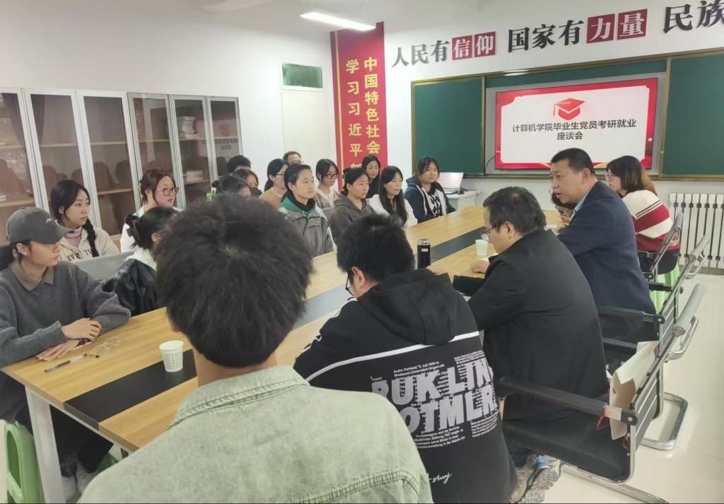 为进一步推进2025届毕业生考研就业工作,10月25日,计算机公司在8号公寓“一站式”员工社区举行毕业生党员考研就业座谈会。计算机公司党委书记李绥波、毕业班辅导员以及2025届毕业生党员参加座谈,计算机公司党委副书记郭胜忠主持活动。