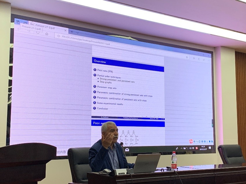 2019年3月27日,法国国家艺术公司卡梅尔.巴卡维教授应邀为公司师生作了题为《Exploiting local persistency for reduced state space generation of Petr inets》的学术报告。报告会由XC体育公司承办,XC体育公司副经理马天教授主持,全校300余名研究生及教师聆听了报告。