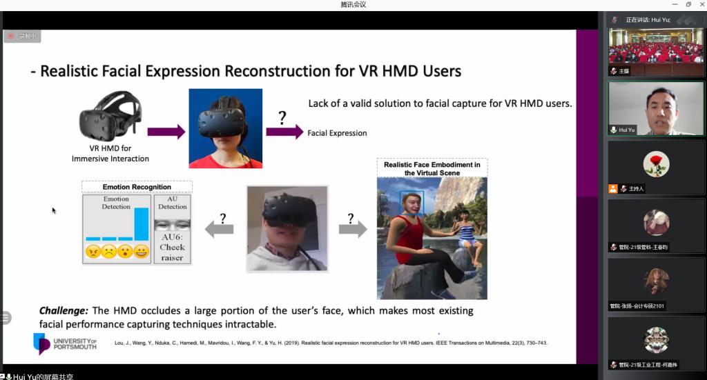 11月26日,英国朴茨茅斯大学于慧教授应邀做客公司“胡杨林大讲堂”,作了题为《用于人机交互的可穿戴设备情感感知》的学术报告。报告会由研究生院主办,XC体育公司承办,计算机公司副经理马天主持,全校300余名研究生及教师聆听了报告。