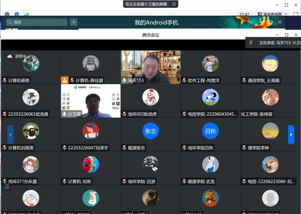 讲座结束后,同学们都感觉意犹未尽,收获颇多,一致认为计教授的讲座拓宽了研究思路,开拓了研究视野,紧跟时代的步伐,让同学们的所知、所识站在技术的前沿。最后,在同学们线上热烈的掌声中,本次“胡杨林大讲堂”圆满结束。
